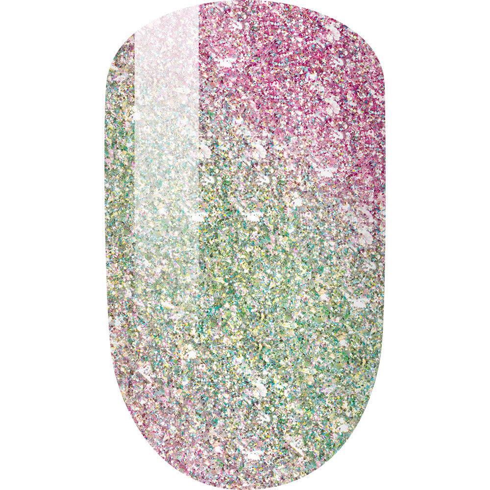Stare into the mesmerizing glow. Colors shift between green and pink with sparks of orange and silver. Holo glitter.