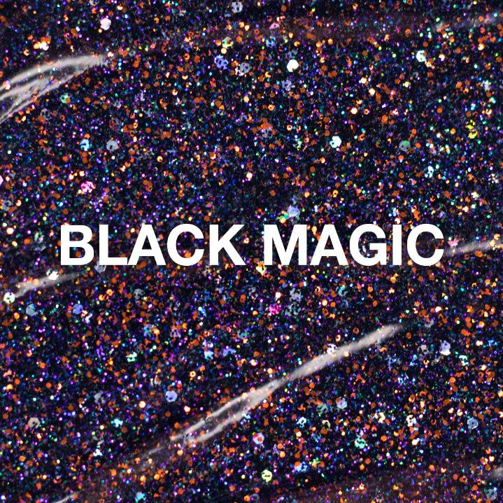 This glitter is truly Halloween magic! A black glitter base with tiny flashes of Halloween orange throughout, also mixed with tiny pieces of fuchsia, greens and bright blues. This glitter is going to be a Halloween Trick-or-TREAT!