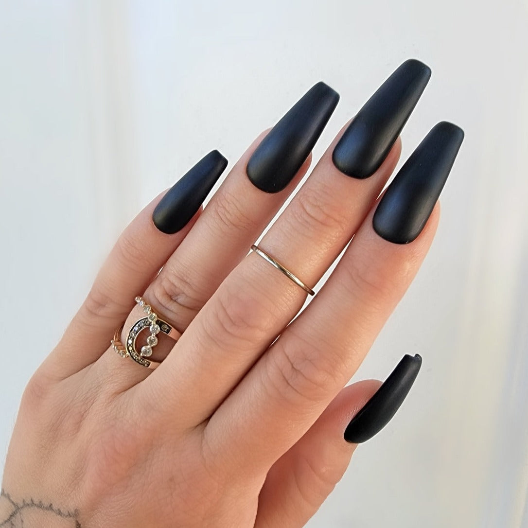 Is it black or is it blue? This is a deep, dark navy blue that almost looks black with incredible depth thanks to the blue undertones. This creamy blue is dark and dramatic.