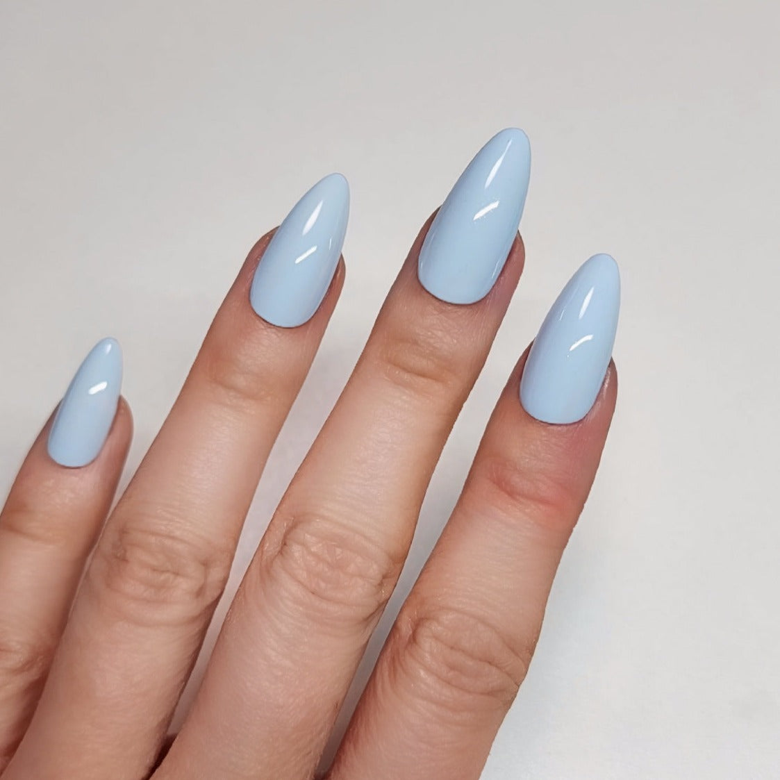 A soft, pastel baby blue. This light and airy blue delivers the fresh Spring look your style demands!