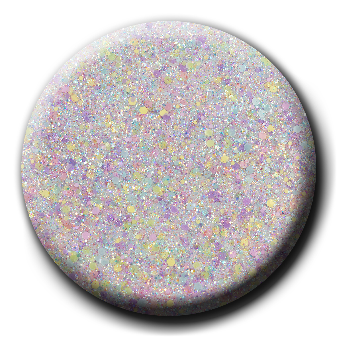 Tiny iridescent pieces make up the background for larger satin pastel glitters. Sweet pinks, light purples and soft yellows make up this adorable Spring glitter and only adds to your adorable Spring style.