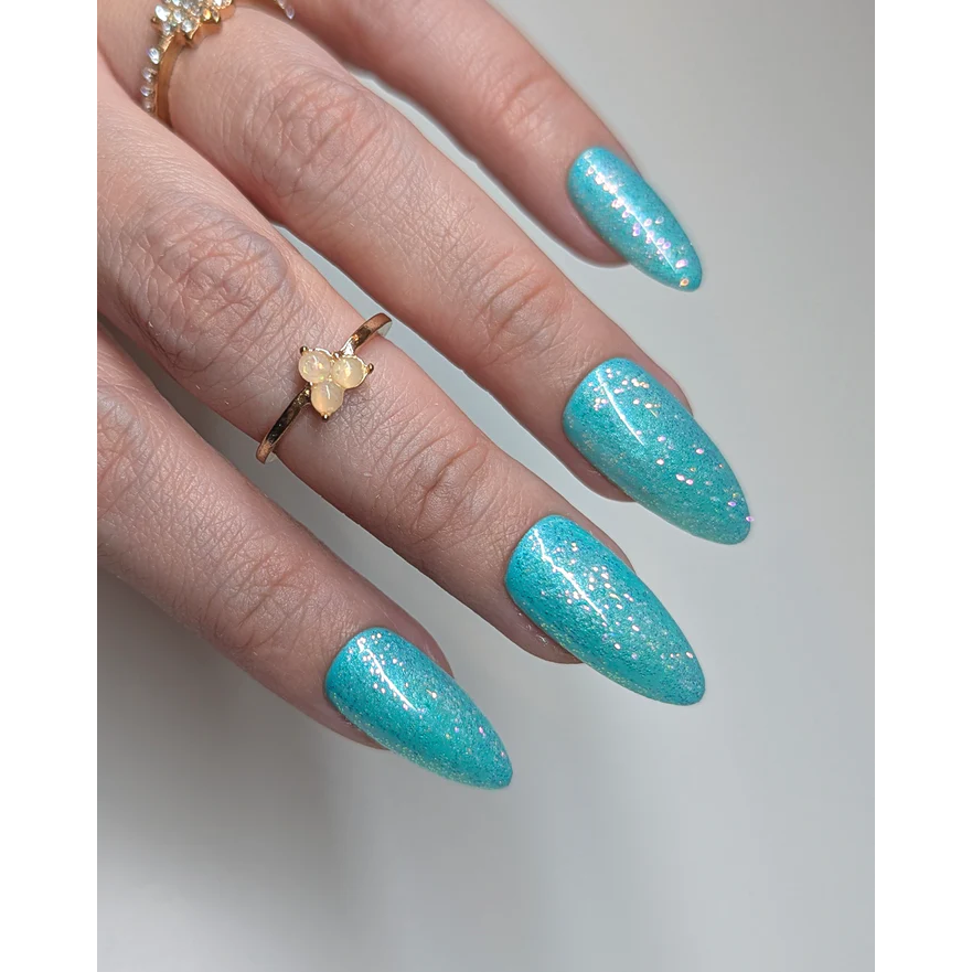 A reflective, translucent mint-green that is soft and sweet. Flashes of pink glitter throughout gives this glitter a little spice!