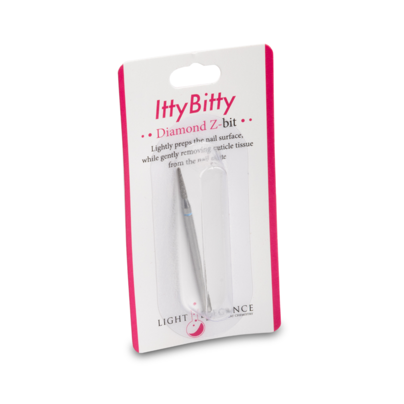 This long, slender diamond bit both lightly preps the nail surface, while gently removing cuticle tissue from the nail plate, in very hard to reach corners and along sidewalls. Itty Bitty Bit is a perfect dry manicure bit!