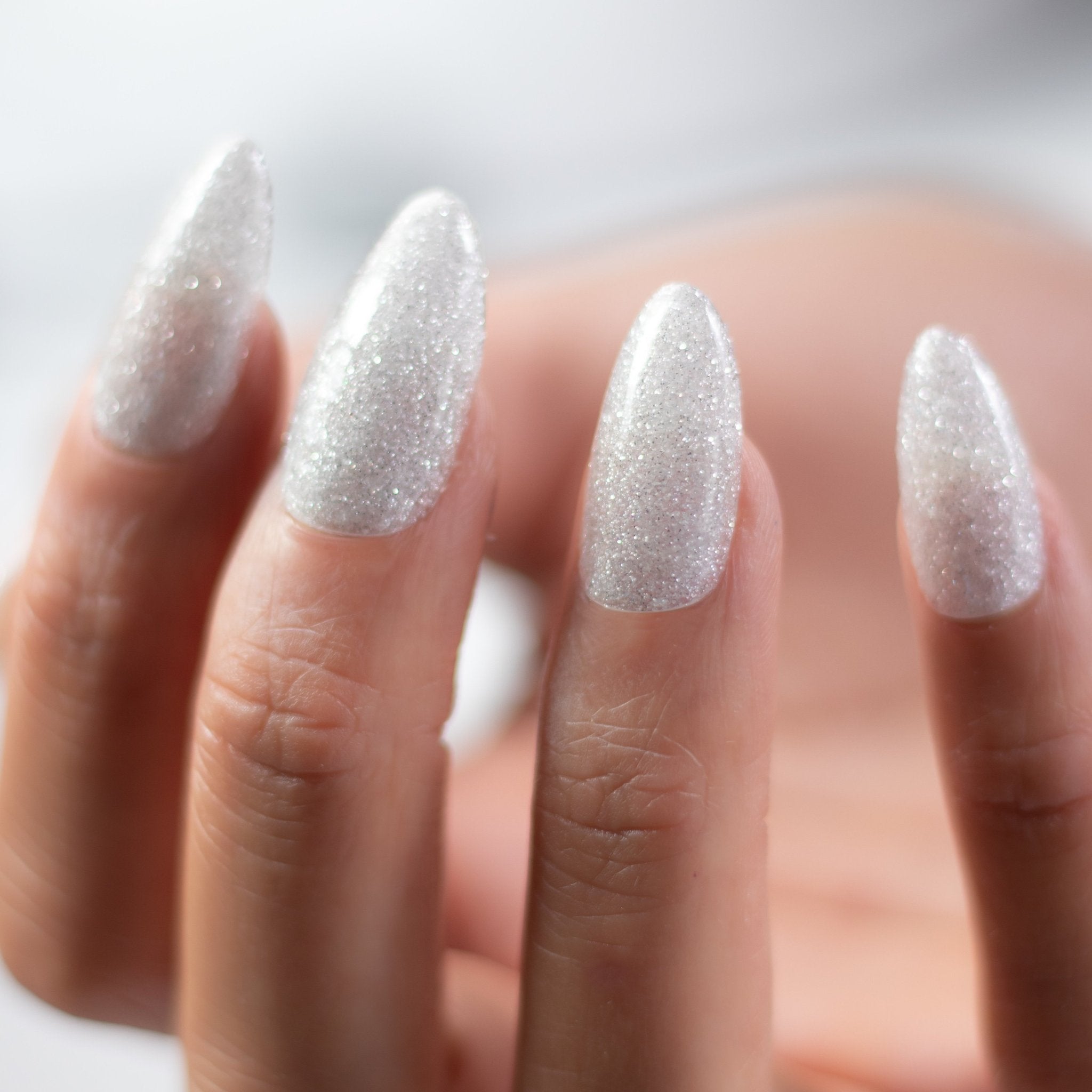 A soft, light grey glitter that has a twinkle diamond shine! It is a quiet, neutral-grey that sparkles in the light.