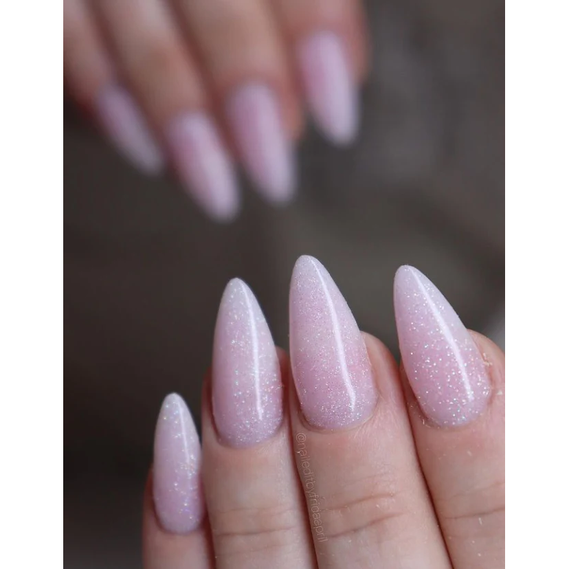 A soft, sweet baby pink iridescent glitter with fine sparkles and sheer coverage.This fine glitter reflects many pastel colors perfect for completing a softer look. You will be impatient to get this onto the nails and complete your look!
