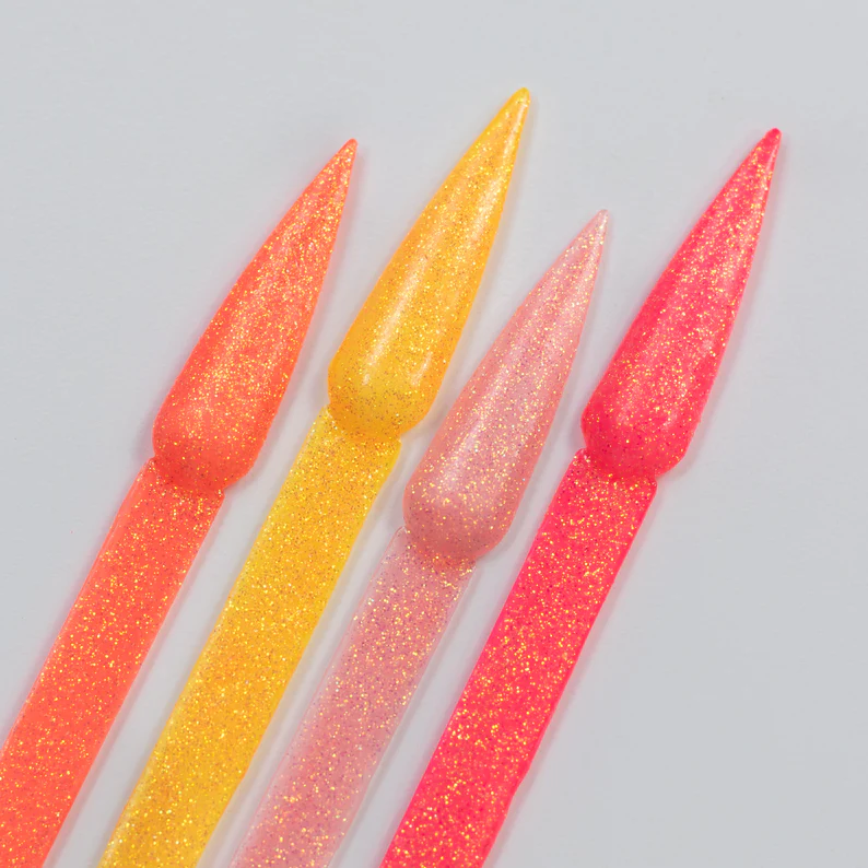 The perfect orange glitter gel and one of the all-time LE best sellers! A fire orange, peachy glitter that flashes yellow-gold & light green. This translucent glitter can have many different looks!