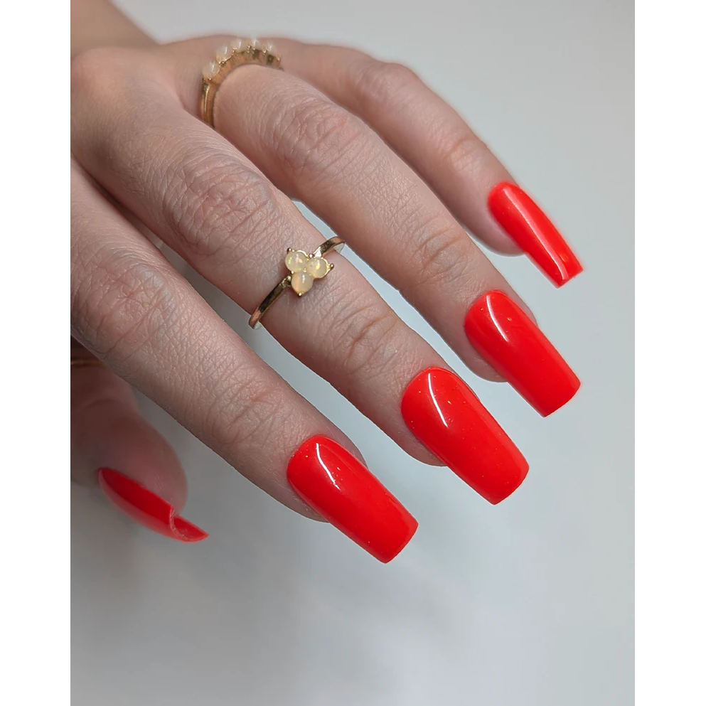 Grab the fire extinguisher! This is a creamy, hot neon red. This red pulls more orange than blue which makes for a flamin’ hot nail.