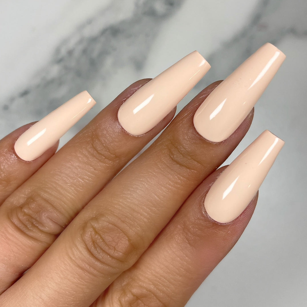 A neutral peach with a lot of white in the background. This color could also be described as a sandy peach with just a touch of yellow, soft and wearable for clients of all styles.