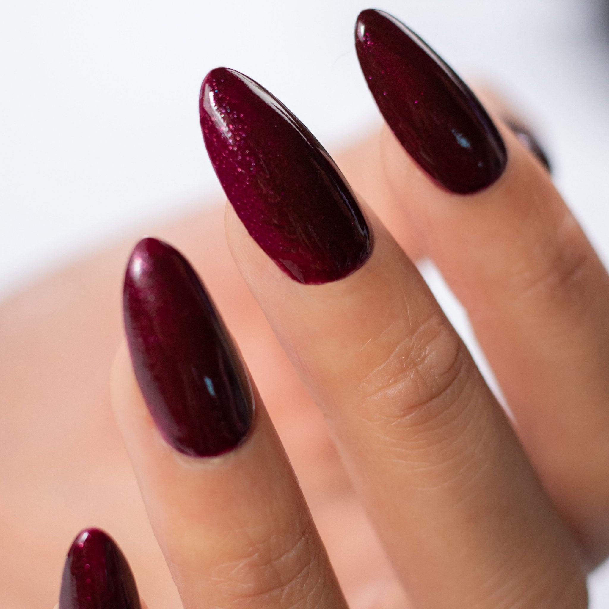This shade has a deep, plum raisin background with flashes of pink and purple sparkles. This bold, rich plum is dark and dramatic to complete your sophisticated look.