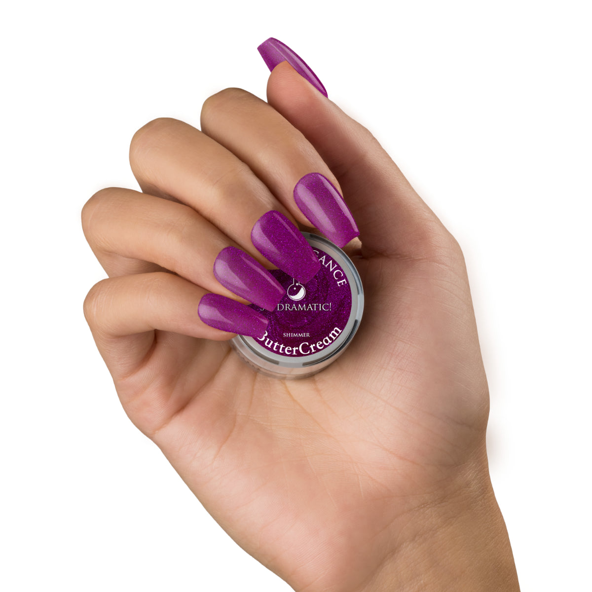 A vivacious purple plum. This purple has small and subtle fuchsia shimmer that dances throughout. Rich, sophisticated and fun!