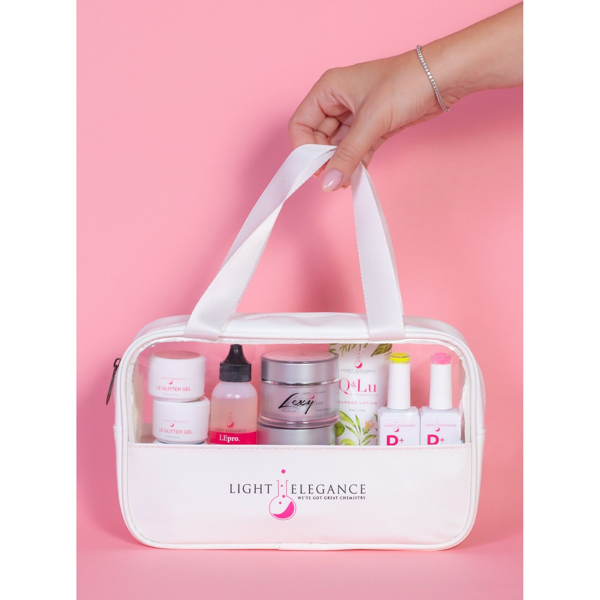 Light Elegance Branded Cosmetic BagThis stylish cosmetic bag features our signature logo, sleek design and peek-a-boo window combining practicality with a touch of style-Travel easy with a cute LE branded cosmetic bag-Long handles for convenient travel and on-the-go pros-Perfectly sized to fit in your handbag or travel luggage (10.5 in x 6.5 in)-Spacious design with peek-a-boo window for traveling with products, brushes and other beauty tools effortlessly