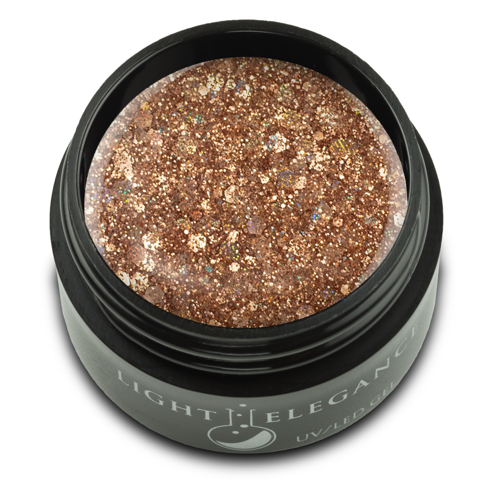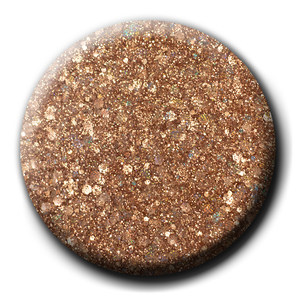 This fine-meets-chunky glitter gel is a brown-gold copper. This flashy gold-neutral catches the eye and provides pop for any style.
