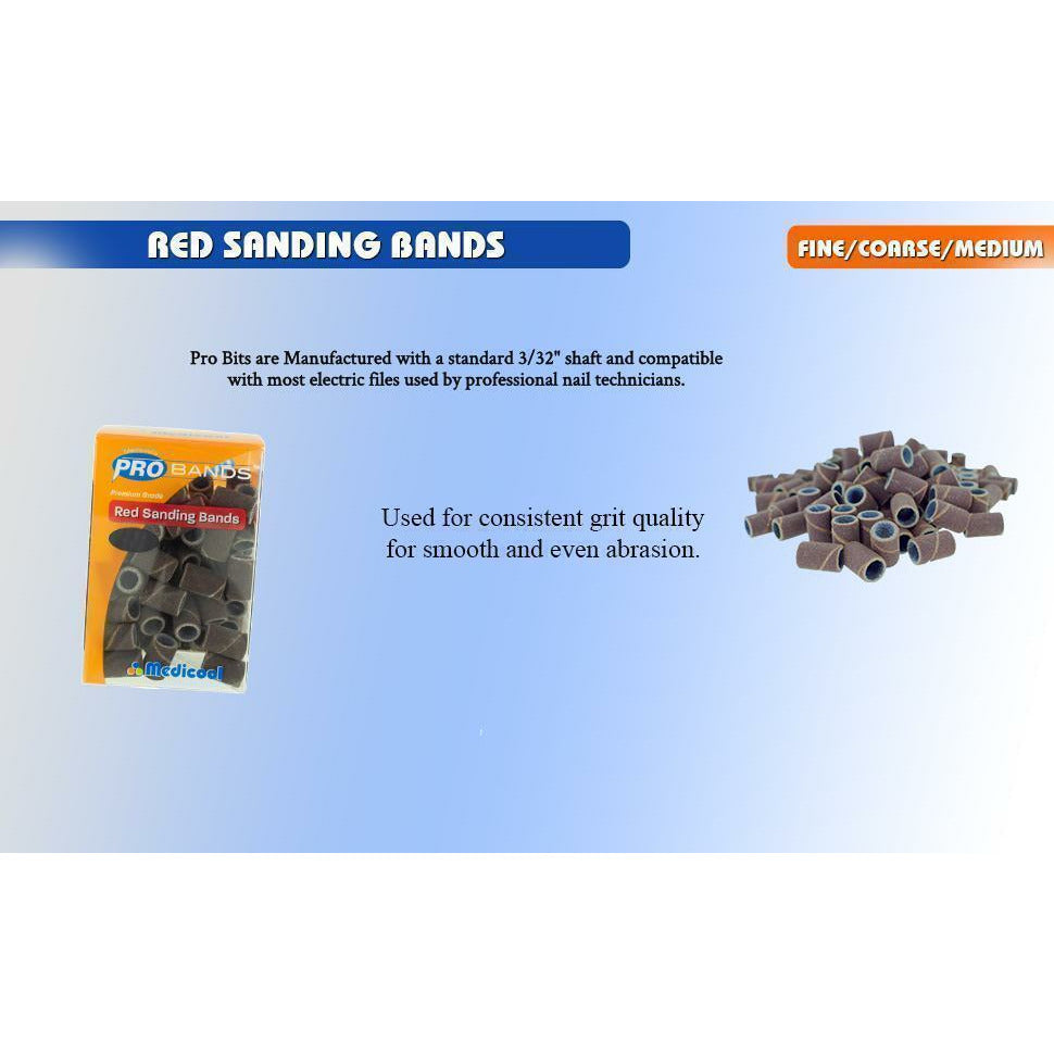 Medicool Pro Bits Red Sanding Bands are used for consistent abrasion.
