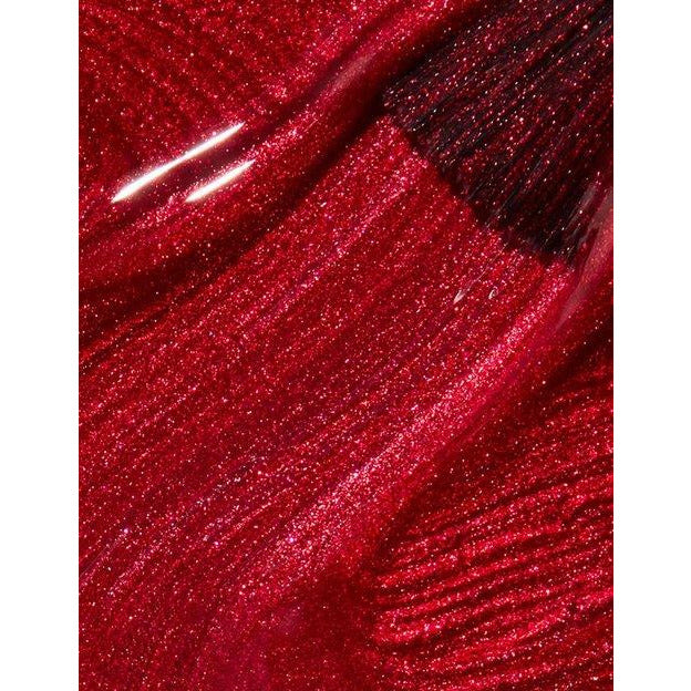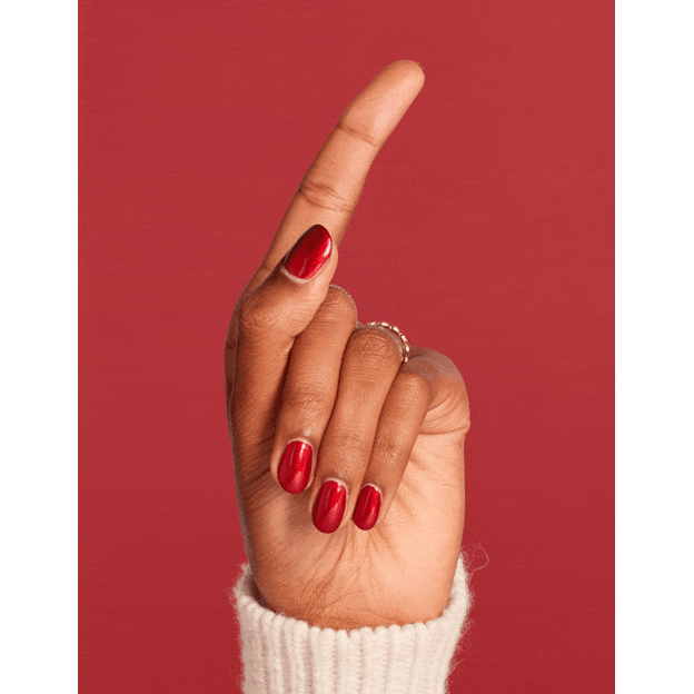 No peeking! Focus on the real jewel—an amazing red gel nail polish from OPI.