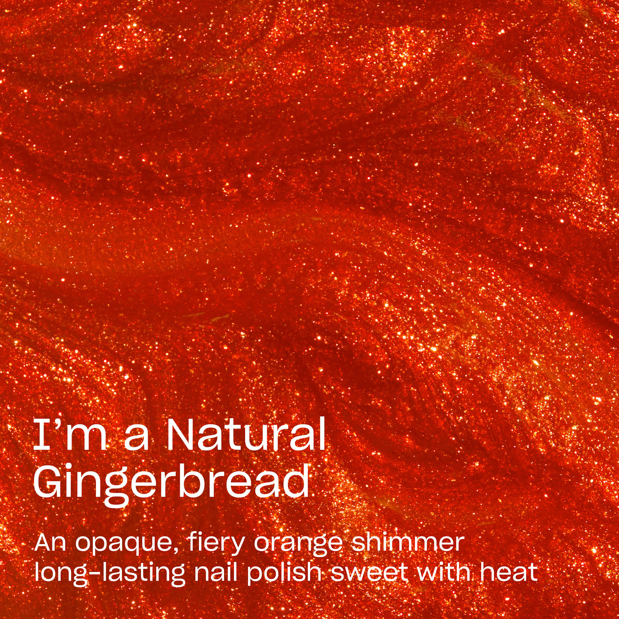 This long-lasting warm orange shimmer nail polish proves gingerbread heads have more fun!