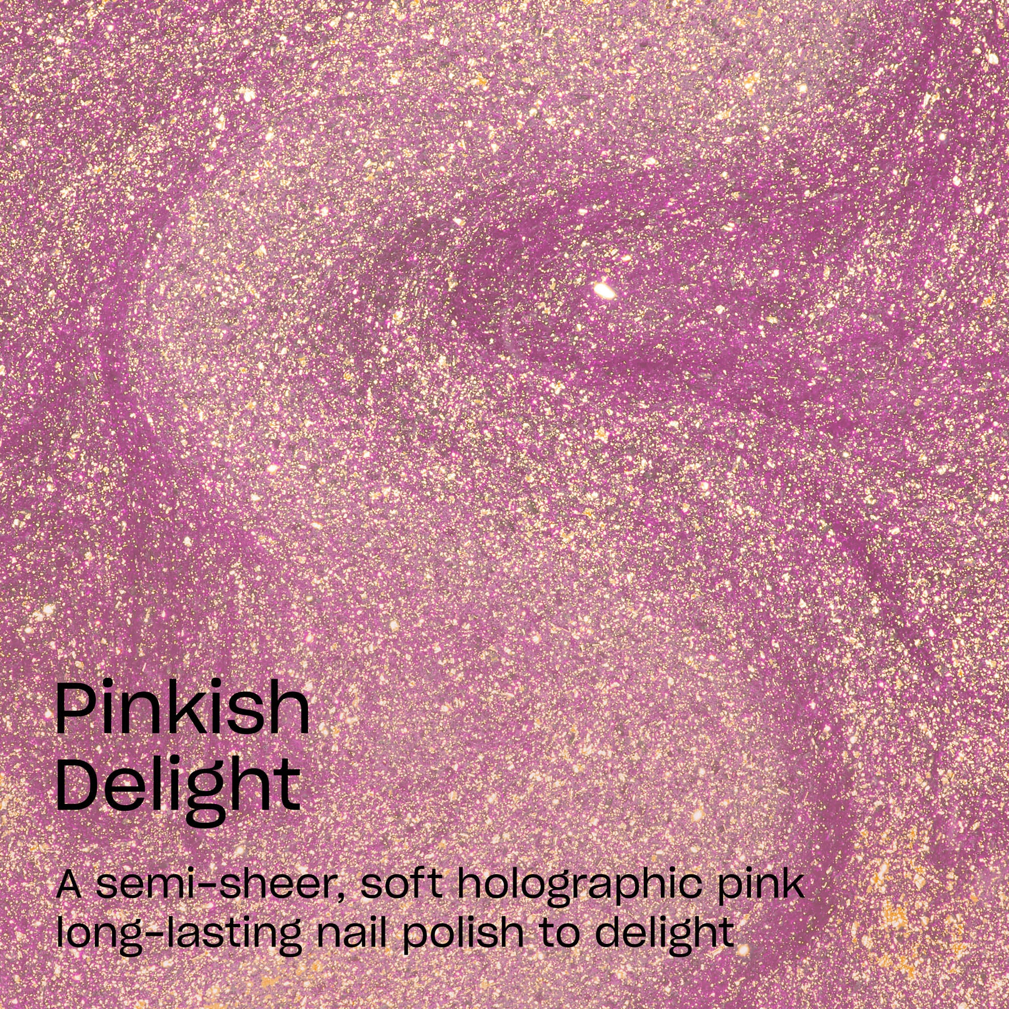 A long-lasting pink holographic nail polish hue that's good enough to treat.