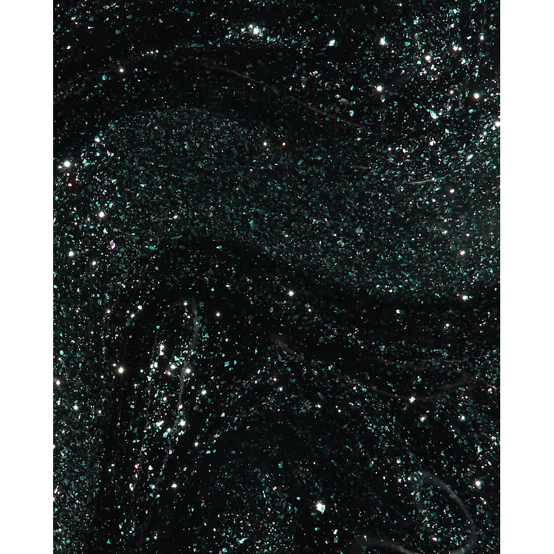 A black nail polish with blue and silver shimmer that’s destined to fly.