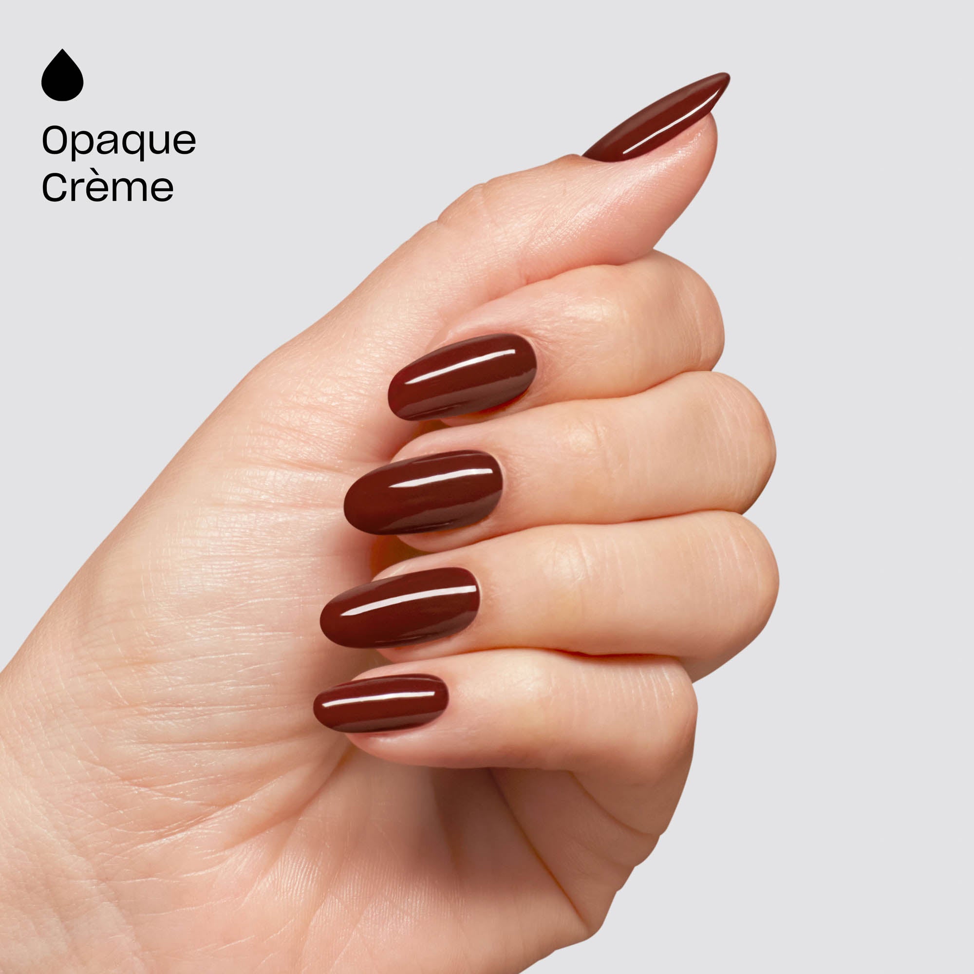 Your holiday look isn't complete without the mani attraction: this rich brown nail polish hue. Just like picking chocolates from a candy box, you'll pick this deep brown crème with a divine finish every time. Treat your nails to limited edition candy-coated colors in Nail Lacquer, GelColor, and Infinite Shine shades, plus sweetly stunning press-on sets that are Good Enough to Treat.
