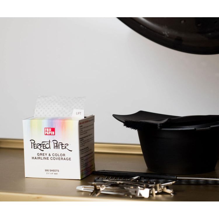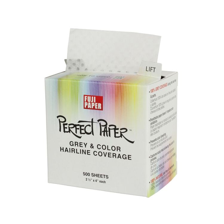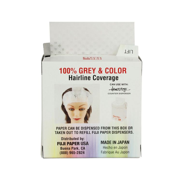 100% grey and color coverage along the hairline and parts Breathable paper doesn't impede color oxidation Prevents color bleeding Captures scalp heat allowing the color to process 100% natural and free of chemicals Use in between foils to prevent bleeding Pre-folded sheets save time and money. As paper is pulled a new one pops up! Fuji Papers have a strong grip and 4x the saturation of other end papers Self-dispensing box containing 500 sheets Dispense directly from the box or use to refill the Counter or Hand Dispenser Subscribe & Save up to 10% on Fuji Paper! Made in Japan...