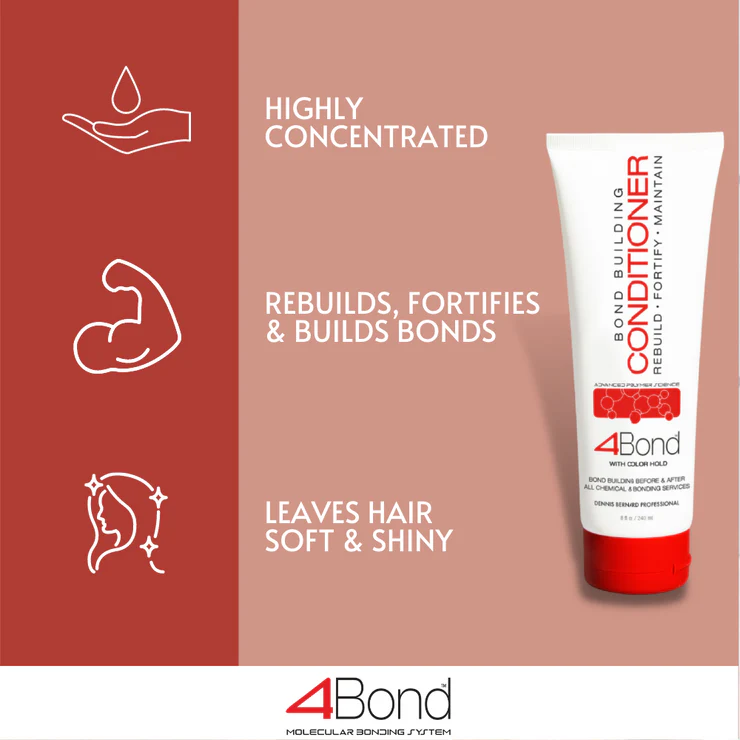 he 4Bond shampoo & conditioning system is the smartest & most targeted innovation in hair care technology today. This Smart Target Technology, a first of its kind, contains a Proprietary Blend of Polymers, Keratin, Quinoa & Baobab Proteins rich in Amino Acids. This Cationic positively charged blend is drawn specifically to the negatively charged, damaged parts of the hair shaft. 4Bond instantaneously rebuilds, fortifies & maintains the hair bonds, from the inside out.