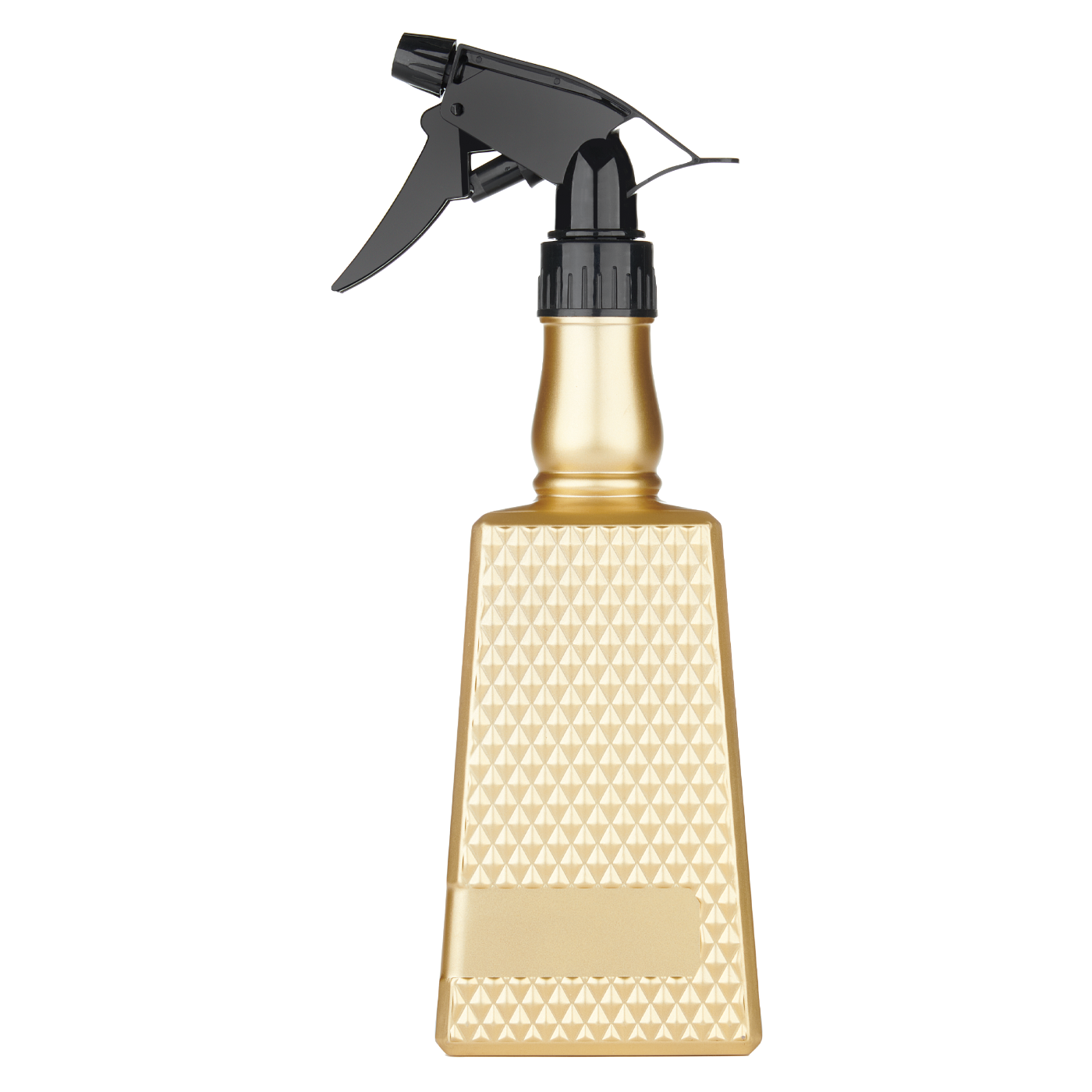 Stylish, gold spray bottle holds 18 oz. of liquid and has an embossed, diamond pattern design.