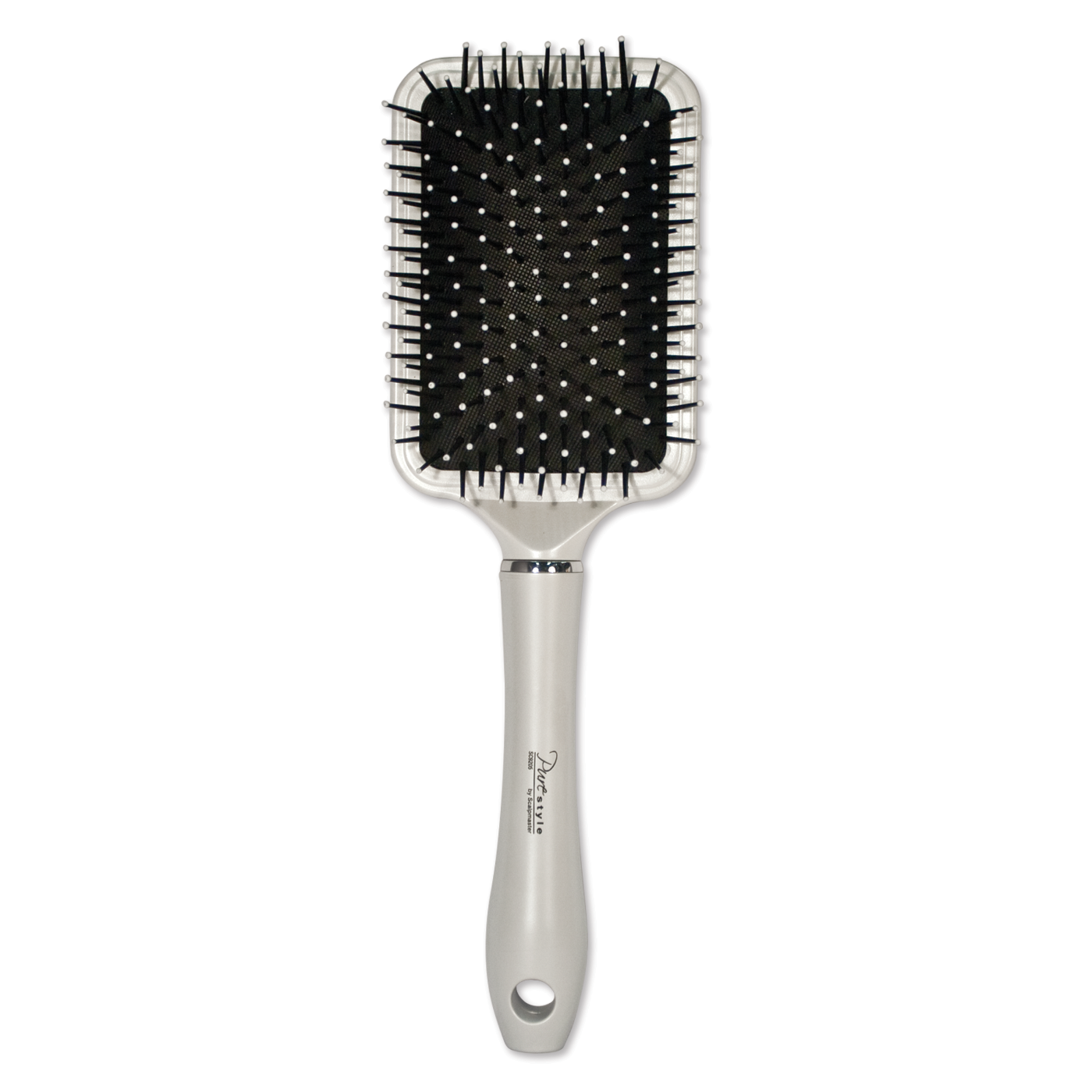 Cushioned paddle is gentle on the scalp and ideal for detangling and smoothing all types of hair.