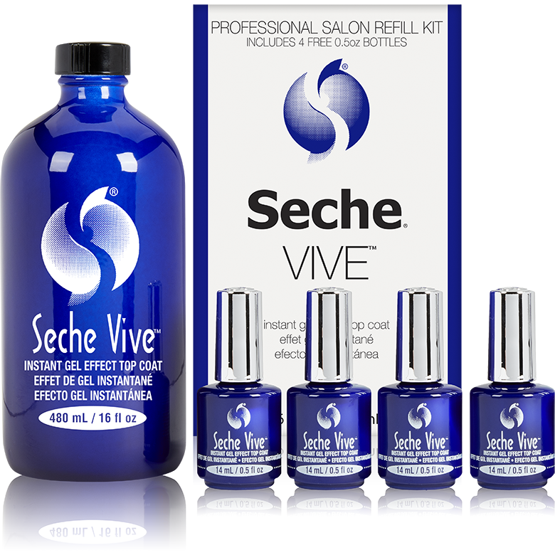 Bring your manicure to life with Seche Vive Instant Gel Effect Top Coat. This specially formulated fast drying top coat delivers the plumping effect of a gel in a glossy, high shine without the use of a UV/LED light! The salon worthy manicure removes easily with any acetone or non acetone nail polish remover.
