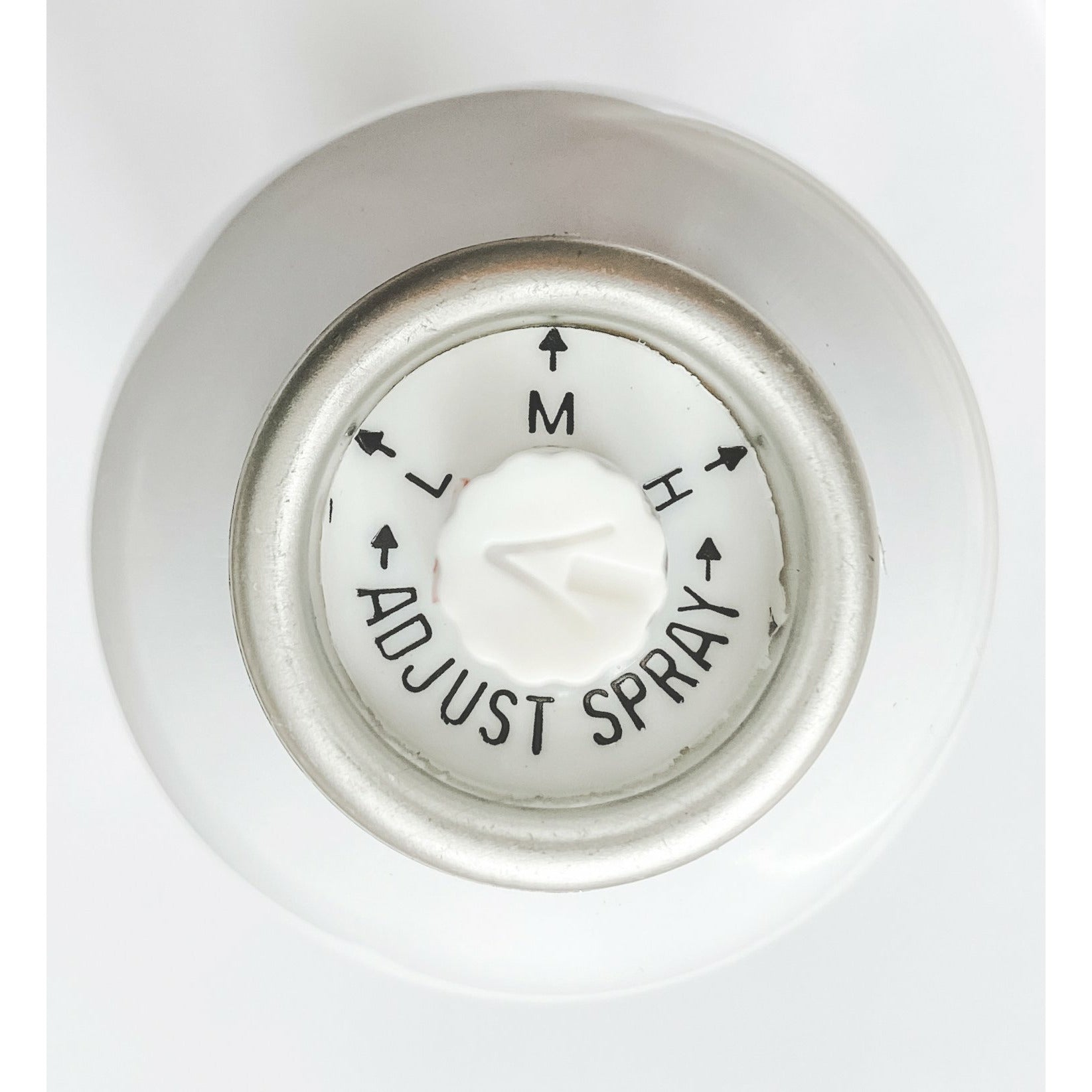 TURNING THE DIAL TO YOUR DESIRED STYLE. Position can 10 to 12 inches from hair, spray in fluid strokes. Each turn of the dial will dispense more or less product, ‘L’ight for less product, for beach wave looks and taming flyaways. ‘M’edium for a flexible hold, great for preparing hair for use with hot tools. ‘H’ard for flexible yet firmer hold, great for UpDos, Braids and Tight Wanding. Re-apply for an even harder hold.