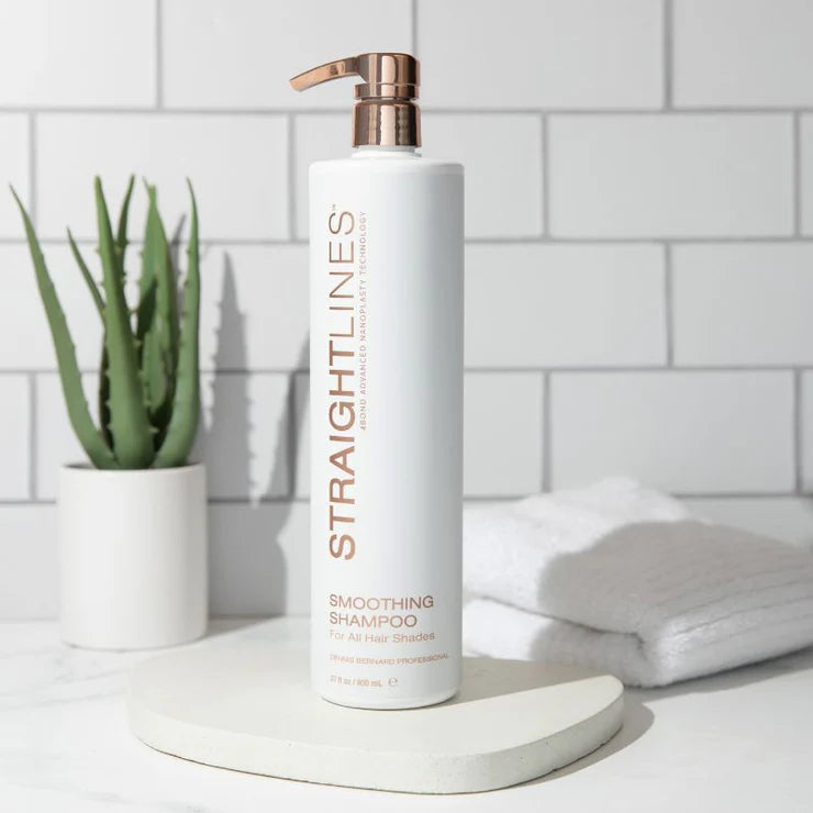 STRAIGHTLINES™ Smoothing Shampoo Original formula is designed to maintain hair(s) smoothness, fullness, and shine. Also excellent to prolong the effects of any straightening service that has been performed on hair (i.e. STRAIGHTLINES™ One Step Permanent Straightening Treatment). This unique formula offers protection for the hydro-lipid barrier, scalp, and hair stems, guarding against damage. Enriches with potent anti-frizz and natural ingredients, it provides optimal hydration, making it an ideal choice for maintaining vibrant and lustrous dark shades. This formula is silicone and paraben free.