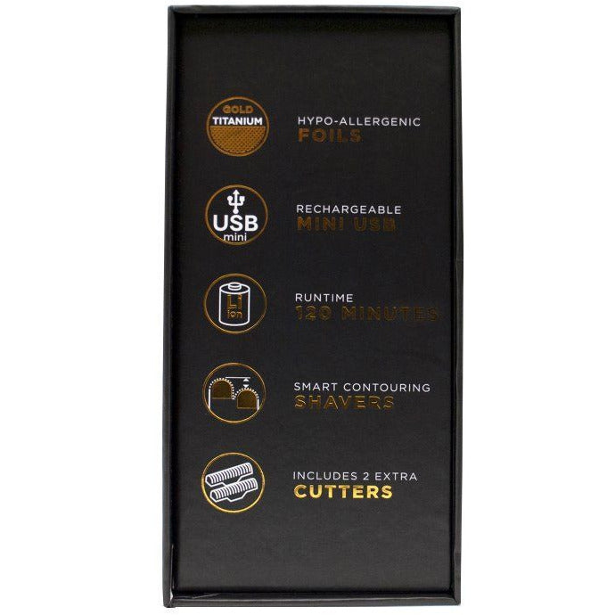Italian designed and engineered with ultra-thin, hypo-allergenic gold titanium foils and staggered, independently floating cutters. This advanced design gives a closer, smoother shave, keeping the most sensitive skin free of razor bumps, ingrown hairs or skin irritation.