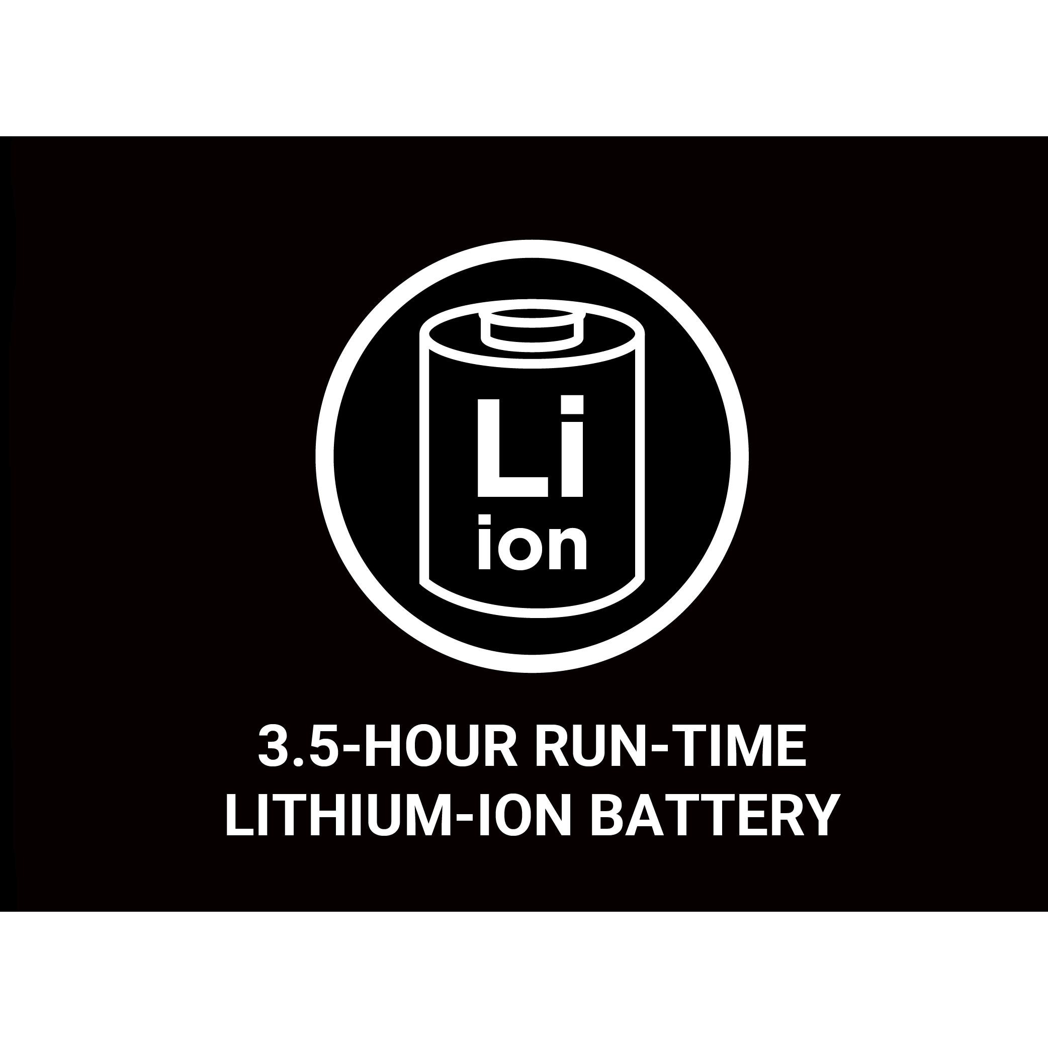 • LITHIUM-ION BATTERY Delivers up to 3.5-hour run-time
