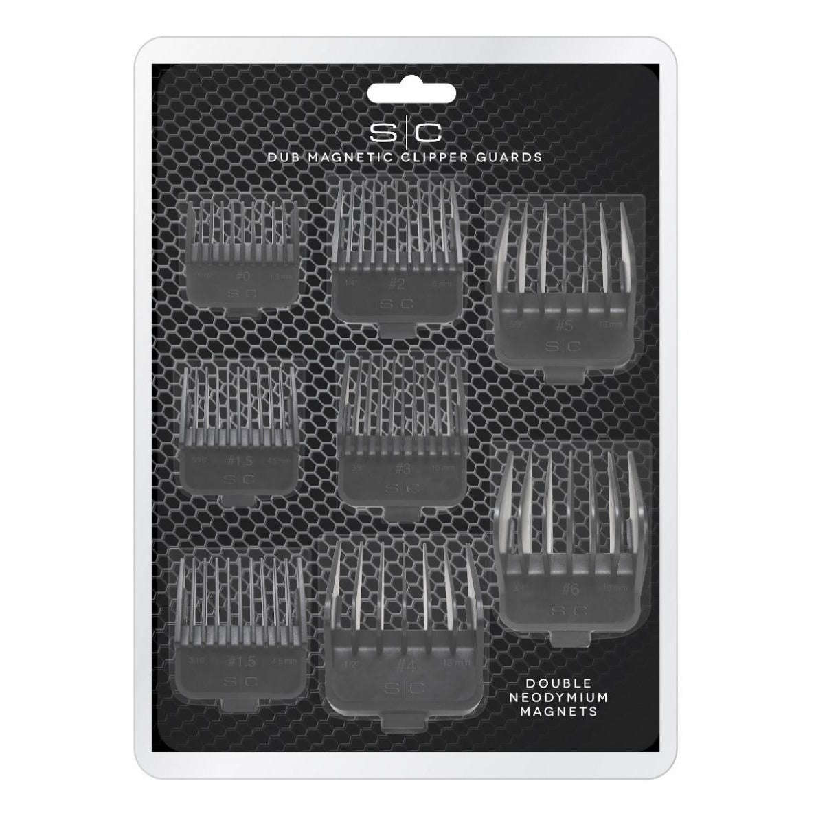 The StyleCraft Double Magnetic Clipper Guards easily attach to most popular clippers with a strong double magnet system to keep them in place. With 8 different lengths to select from you can find the right guard quickly and easily for any cut. Intelligently designed and engineered to prevent clipper teeth from rubbing while the innovative hair channel system has improved feeding of hair to the blade.   Whether you're a professional or a home haircut connoisseur, the StyleCraft Dub guards are sure to not disappoint! Professional complete set of double Neodymium magnetic guards Premium quality virgin plastic Compatible with most popular clippers Magnets are securely fastened...