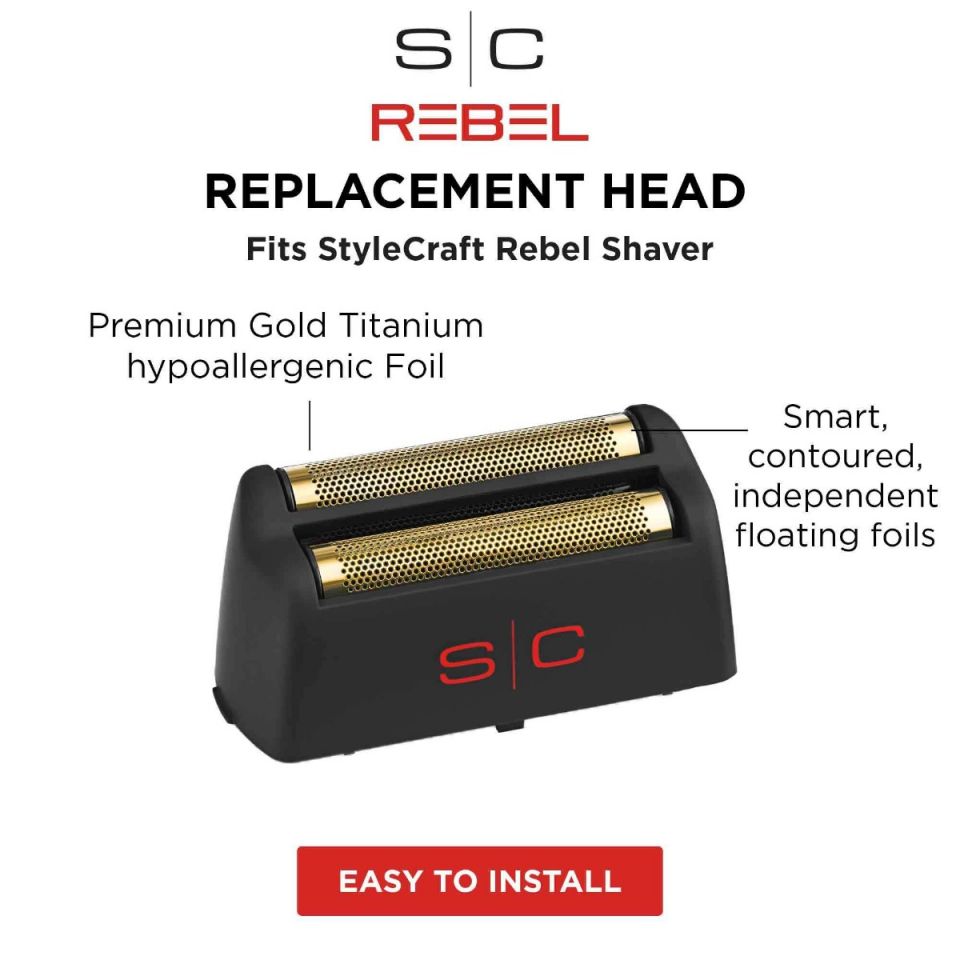 This replacement snap-on foil head is compatible with the StyleCraft Rebel Professional Electric Men’s Foil Shaver only. The professional choice for dry shaving the face, neck, or scalp. Perfect for a quick touch-up at the end of the day. Gold Titanium foils offer hypoallergenic properties for a superior shaving experience for even the most sensitive skin. The foil head is detachable for easy cleaning and replacement. Place foils under running water to rinse away any hair or debris, and ensure foil is completely dry before replacing. Foils are gold coated and made of the highest quality titanium.