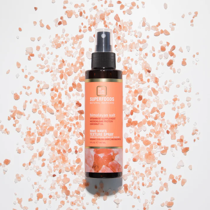 Himalayan Salt Spray adds texture, lift, and hold to flat hair with the help of Organic Superfoods and healthy salt trace minerals. Vitamin B7 and Microalgae Protein pump up body while Coconut Oil boosts moisture and shine.
