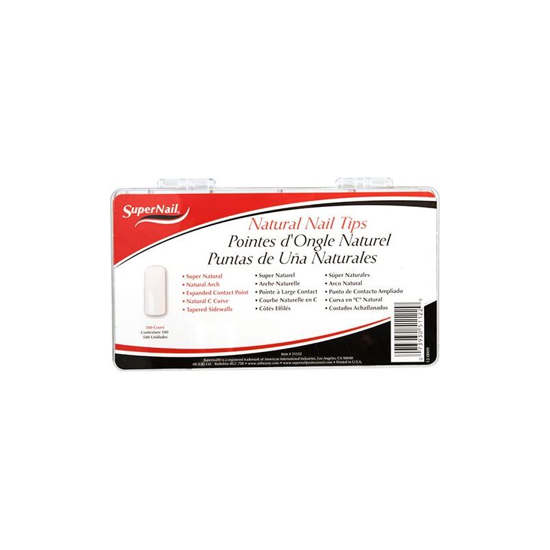SuperNail Natural Tips have a universal shape to fit a wide range of nail shapes and sizes with Natural arch, Expanded Contact point, and Natural C-Curve.