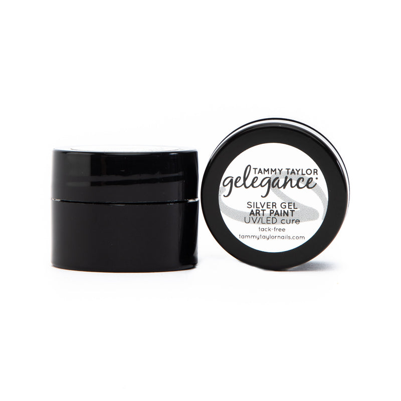 Perfect for creating any nail design! Can be used with acrylic, gel, gel polish, nail lacquer and water paints. Dries shiny and Tack-Free and you can use with or without Top Gel. Ultra-thick consistency and heavily pigmented. No movement & easy to use, Can be used over Nail Lacquer & Perfect to add art to any nail at the very end! Dual cure: 2 min. in UV | 1 min. in LED. Convenient .25oz. jar. Available in White, Silver, Black, & Gold.