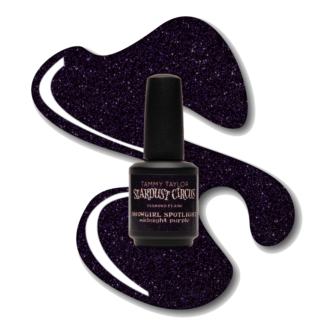 Showgirl Spotlight: A midnight purple. Introducing the Stardust Circus Collection: Diamond Flash Gelegance Gel Polish The Diamond Flash colors are like having two colors in one bottle, without flash it is a deeper color with diamond shimmer, with flash it is a brighter color with intense diamond sparkle! Gelegance Gel Polish: Our premium soak-off gel polish delivers: Up to 3 weeks of wear Glass-smooth, high-shine finish No chipping, peeling, cracking, or lifting Non-damaging formula that doesn't wrinkle or shrink during curing Easy application for all skill levels Solvent-Free, Vegan, Cruelty-Free, Small-Batch Made in the USA Requires UV/LED lamp (60s LED...