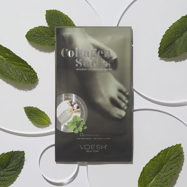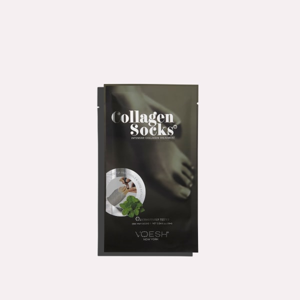 Slip your feet into our deeply nourishing Collagen Socks, infused with our NEW vegan collagen, peppermint oil, and herb extracts. Cooling and refreshing, these foot masks are the perfect remedy for dull, tired skin with their extreme soothing properties. With its convenient, patented design, they’re the perfect addition to any pedicure. Simply tear off the toe tips along the perforated edges for an all-in-one pedicure treatment. Perfect For: Intensive Foot Care Pedicure Prep / Add-on Treatment Netflix & Chill VEGAN COLLAGEN DERIVED FROM FERMENTED SOYBEANS, IT IMPROVES SKIN’S ELASTICITY AND FIRMNESS TO LEAVE SKIN LOOKING SMOOTH AND SUPPLE. PEPPERMINT &...