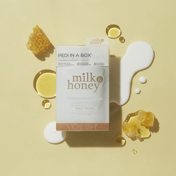 For VIPs Only (Very Indulgent Pedicures)! Take self-care to the next level with our Milk & Honey Pedi in a Box 6 Step. This all-in-one ultimate pedicure kit is infused with soy milk and agave honey to keep skin healthy and glowing. Skin feeling dull and dehydrated? Treat yourself to our Milk & Honey Pedi in a Box 6 Step, your skin will thank you! Infused with soy milk and agave honey, this pedicure makes a great cleanser for the skin. Together, they naturally exfoliate and clear away dirt. The delectable union of milk and honey creates a perfect, farm-fresh scent that soothes and comforts the senses.