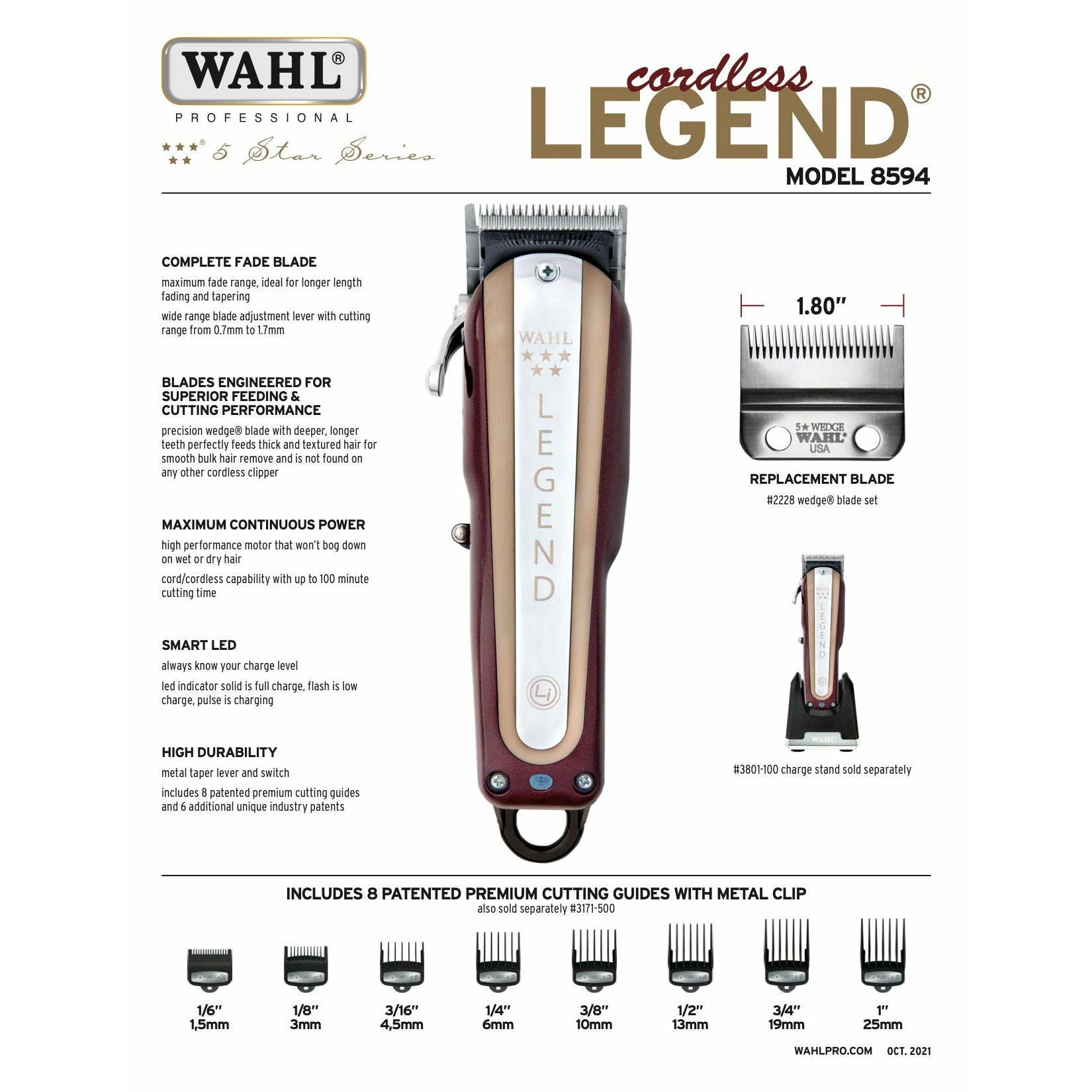 8 premium cutting guides (1-16" - 1'), styling comb, recharging transformer, oil, cleaning brush, operating instructions & red blade guard.
