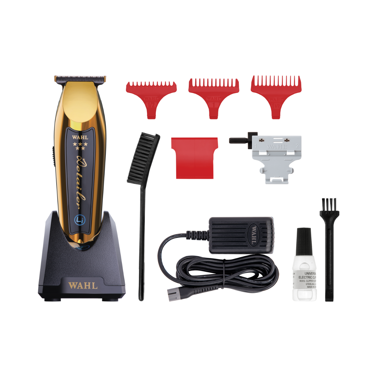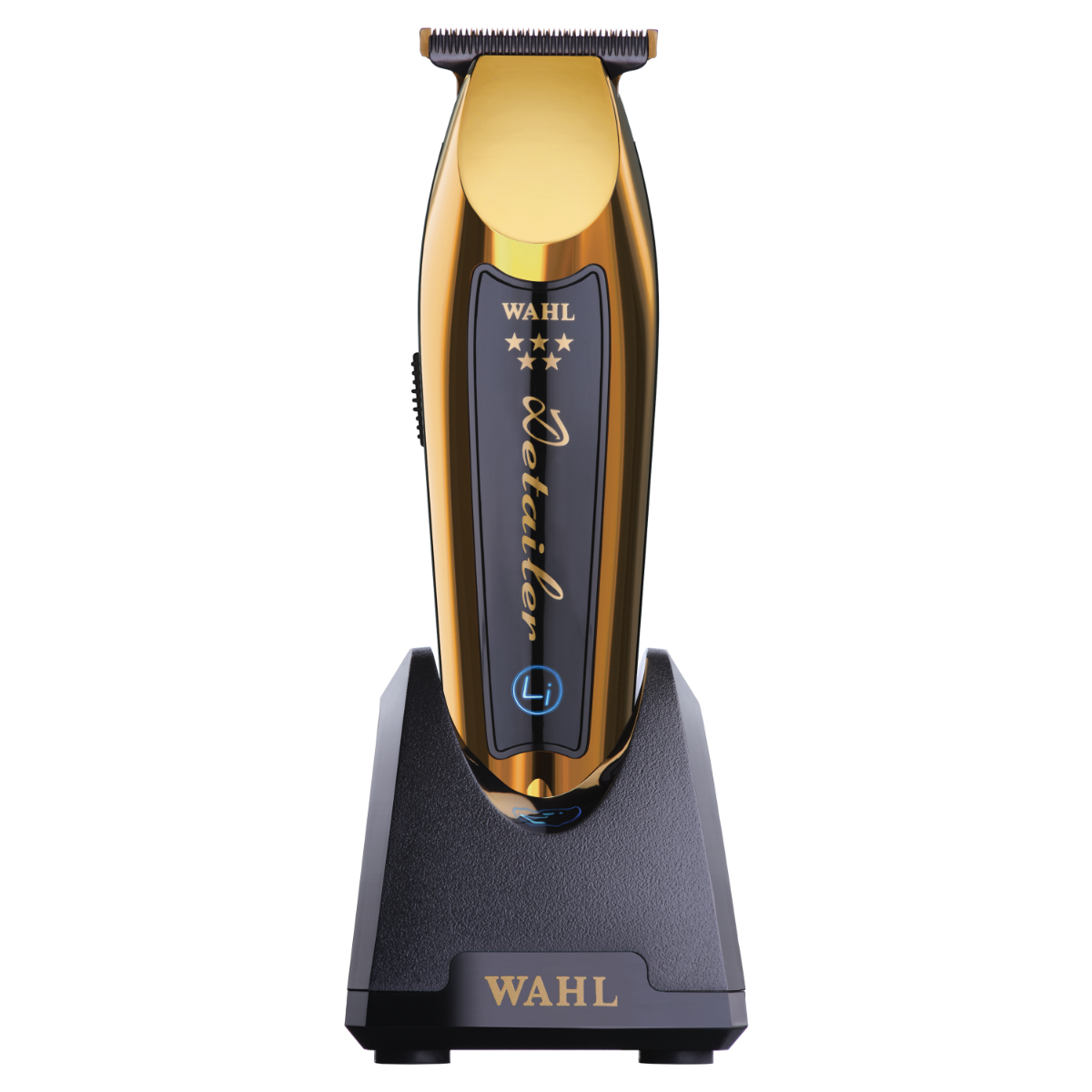 The Ultimate Cordless Trimmer! (Model 08171-700) The T-wide blade has titanium and DLC coatings so that blades stay cooler, are corrosion resistant, and are extremely strong, delivering consistently high performance. The cordless Detailer® Li Gold has an adjustable T-wide blade (#2215-700) for extremely close trimming. It operates for 100+ minutes on a full charge and comes with a weighted, space-saving, charge stand. It features a lithium-ion battery with smart LED charging. This American-made professional hair trimmer uses a powerful, full-sized clipper motor to cut smoothly through all hair types. Blades can be zero-gapped using the Pro-Set tool and is ideal for lining, trimming, and facial hair detailing and design. The cord/cordless hair trimmer measures 5.75" in length, weighs 6.6 ounces and includes 3 trimming guides (1/16", 1/8", 3/16"), power cord, charge stand, pre-shave brush, cleaning brush, oil, red blade guard, pro-set tool and operating instructions. PLEASE NOTE: Due to continuous improvement, the product appearance may slightly vary from the product images on this listing. Made in USA.