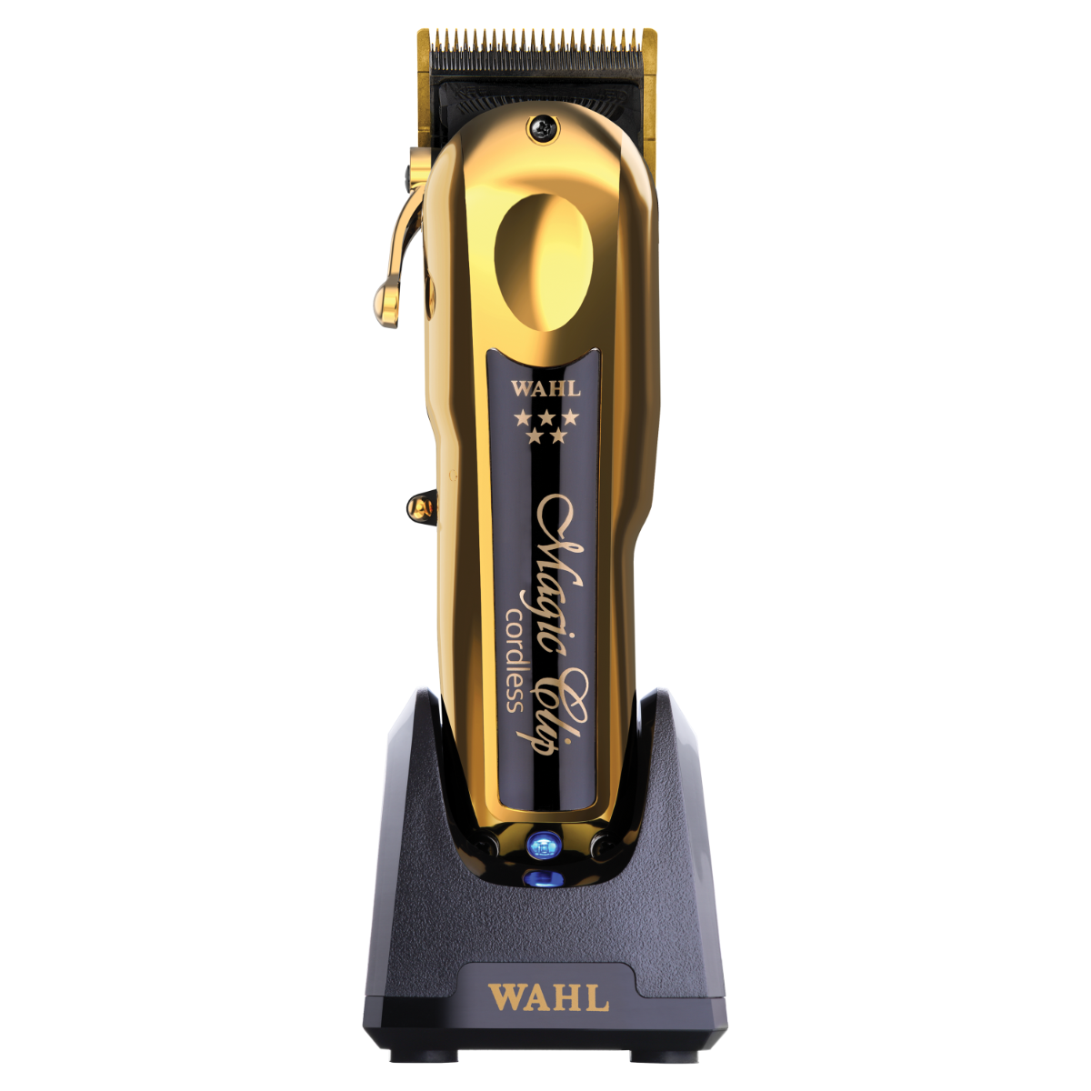 We’ve taken what the world loves about the 5 Star Cordless Magic Clip® and made it even better with a stronger motor and new blades. Seamlessly blending fades is now a reality with the Wahl 5 Star Gold Cordless Magic Clip®. With more power, no hair type can slow its continuous clipping strength. Wet, dense, thick, or textured hair? No problem. The real magic is in the feature-packed blade system. To start, Wahl’s Patented Stagger-Tooth™ blade is specifically designed to eliminate any lines of demarcation between sections of the haircut to create a perfectly seamless fade. Forged with titanium and DLC coatings, blades stay cooler, resist corrosion, and have added strength. And hear that? That’s Wahl’s Crunch Blade™ technology, providing audible feedback as you work. When you stop hearing the crunch, the stray hairs are gone. With stronger power and leading blade innovation, how could we not wrap this ergonomically engineered clipper in gold and add a matching, weighted charge stand? This is for barbers who never stop perfecting their craft. That’s how you earn gold…and truly shine.